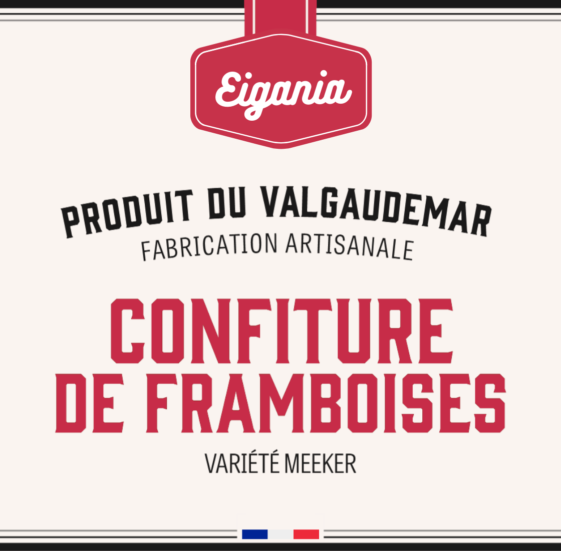 Fruits 70% (Framboises Meeker), Sucre de cannes Bio, Jus de citron Bio.